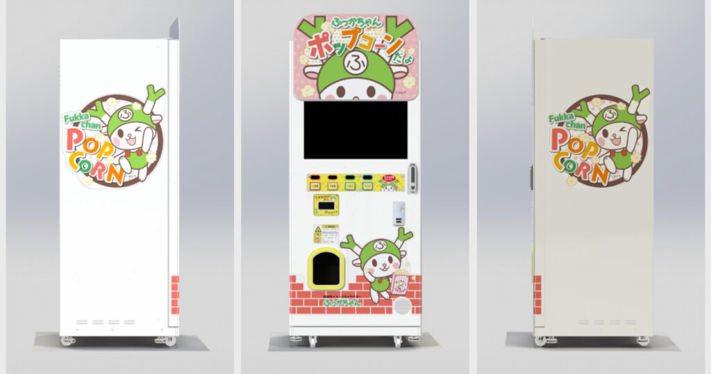 そこで、お客様のゲーム機をOEM/ODMで作ってきたノウハウを活かし、ゲームセンターとは違うアミューズメント機器を作っています。最近では、国民的アニメのIPを使用してポップコーン自販機を自社開発し、販売もしています。