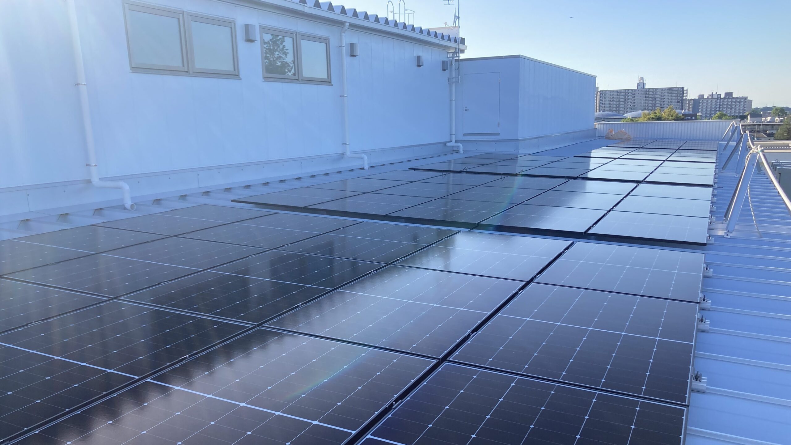 例えば、今回は技術的な理由から4階建て建物の3階屋根に太陽光パネルを設置したため、4階部分の影の影響を受け、稼働率100%の発電は見込めません。