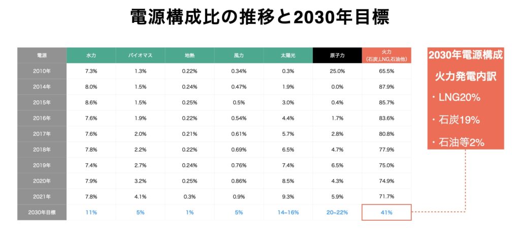 しかし、現状は火力発電が41%まで減らせておらず、まだ72.5%です。