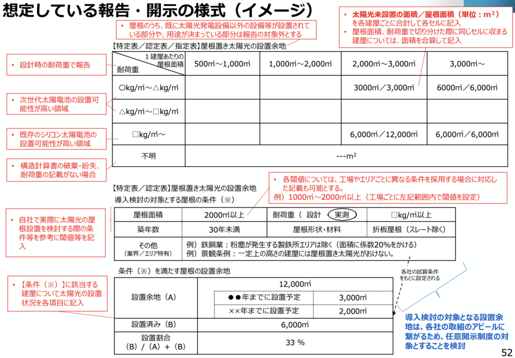 報告は、個別工場単位と企業全体を総計した事業者単位の両方で求められる可能性があり、太陽光発電の導入可能性をより正確に評価できるようになります。