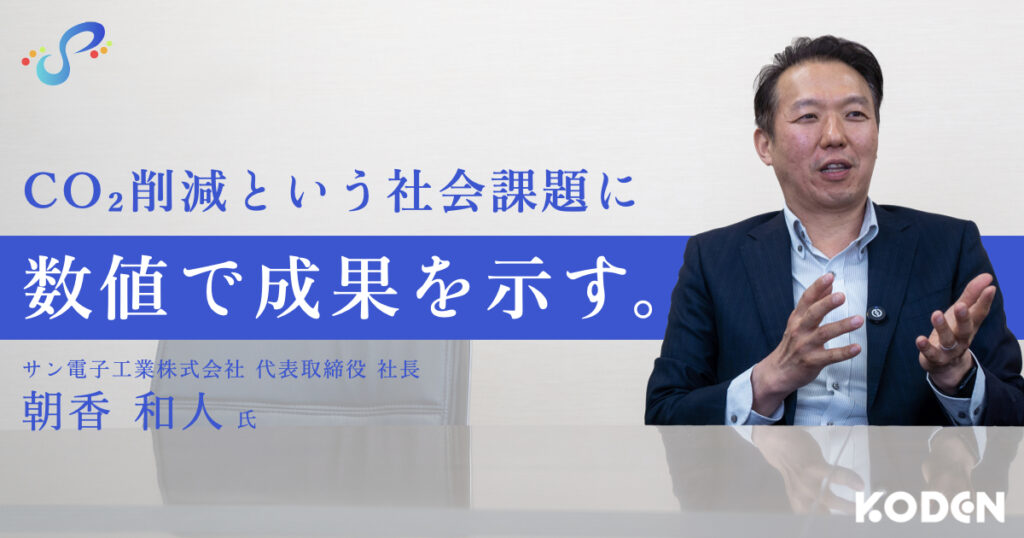 「介護施設を含め地域に根差した事業を展開しており、利益だけを追っているわけではない。CO₂削減という社会課題に、数値で効果を示して応える」と語るのは、サン電子工業株式会社の代表取締役社長・朝香和人様。