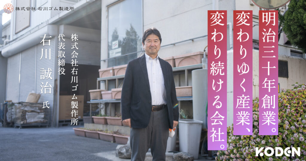 「ゴムというのは、いろんな産業の中の“下着”のようなもの。表には出ないけれど、必ず裏側で必要になるんです。」———そう語るのは、自動車、鉄道、住宅設備、土木、半導体など幅広い産業分野に向けた工業用ゴム部品を製造する株式会社右川ゴム製造所の代表取締役 右川誠治様。