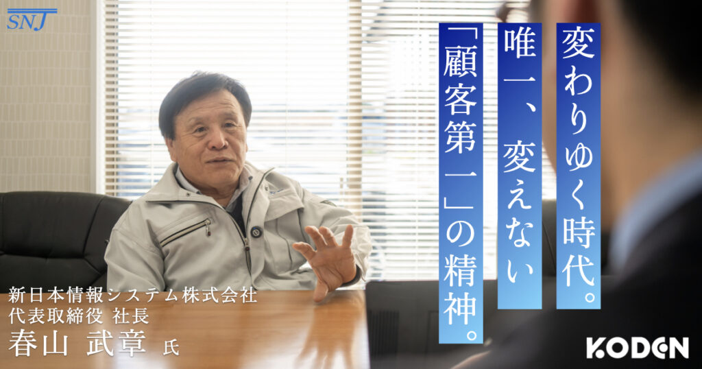 「お客さんに顔を出したときに、“ウェルカム!待ってました!”と言われるような仕事がしたい。それが自分の信念としてずっとあるんです。」――そう語るのは、新日本情報システム株式会社の代表取締役 春山 武章様。